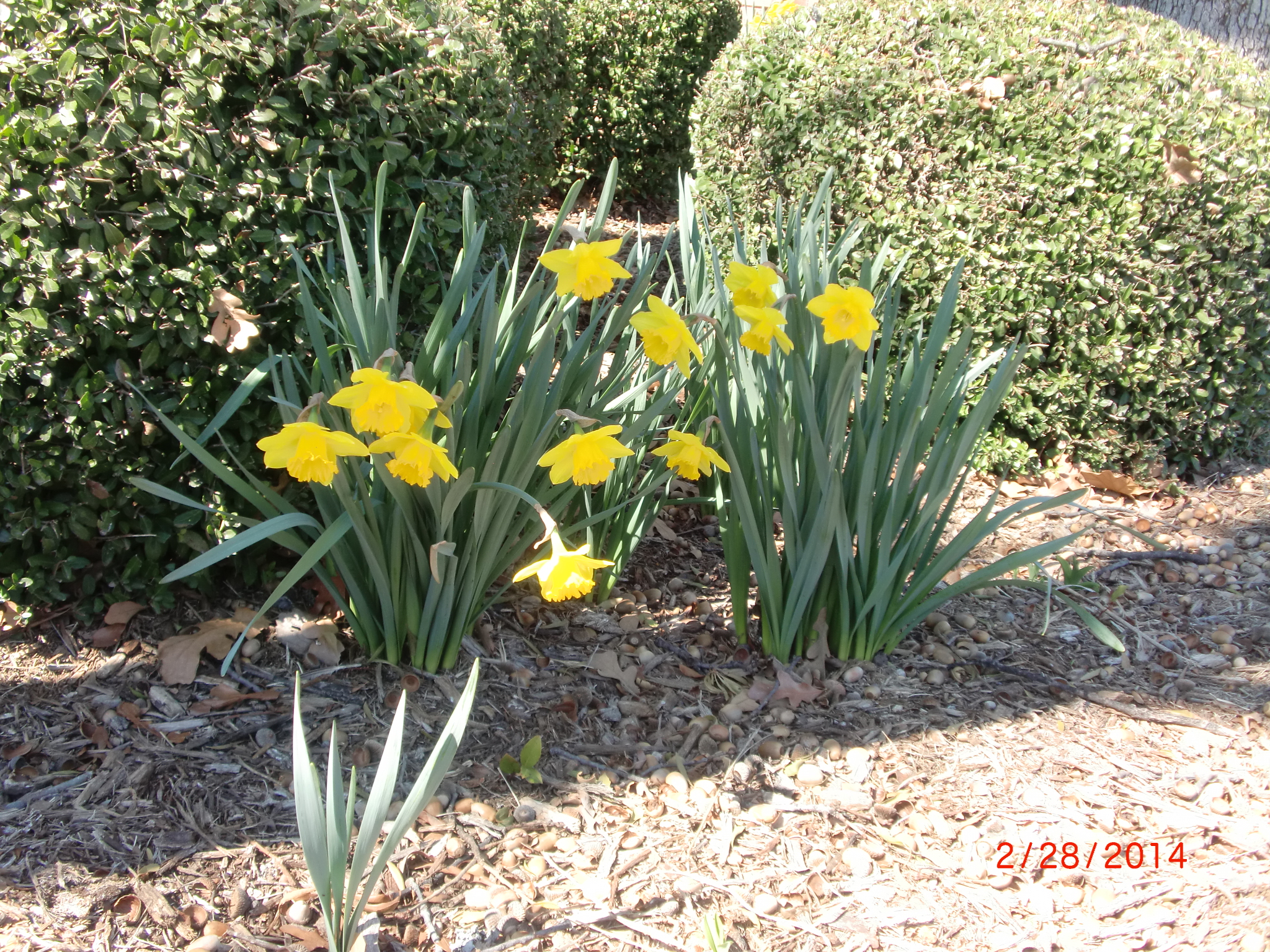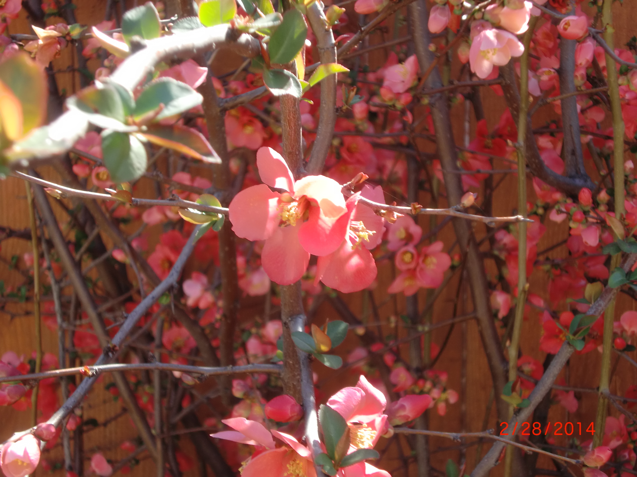 With all of the warm weather, it is not unexpected to see the color come to our neighborhood. The daffodils are very familiar from my Ohio days, but not sure about this other plant. Very pretty pinkish blooms–I am glad I had my camera on the walk today.