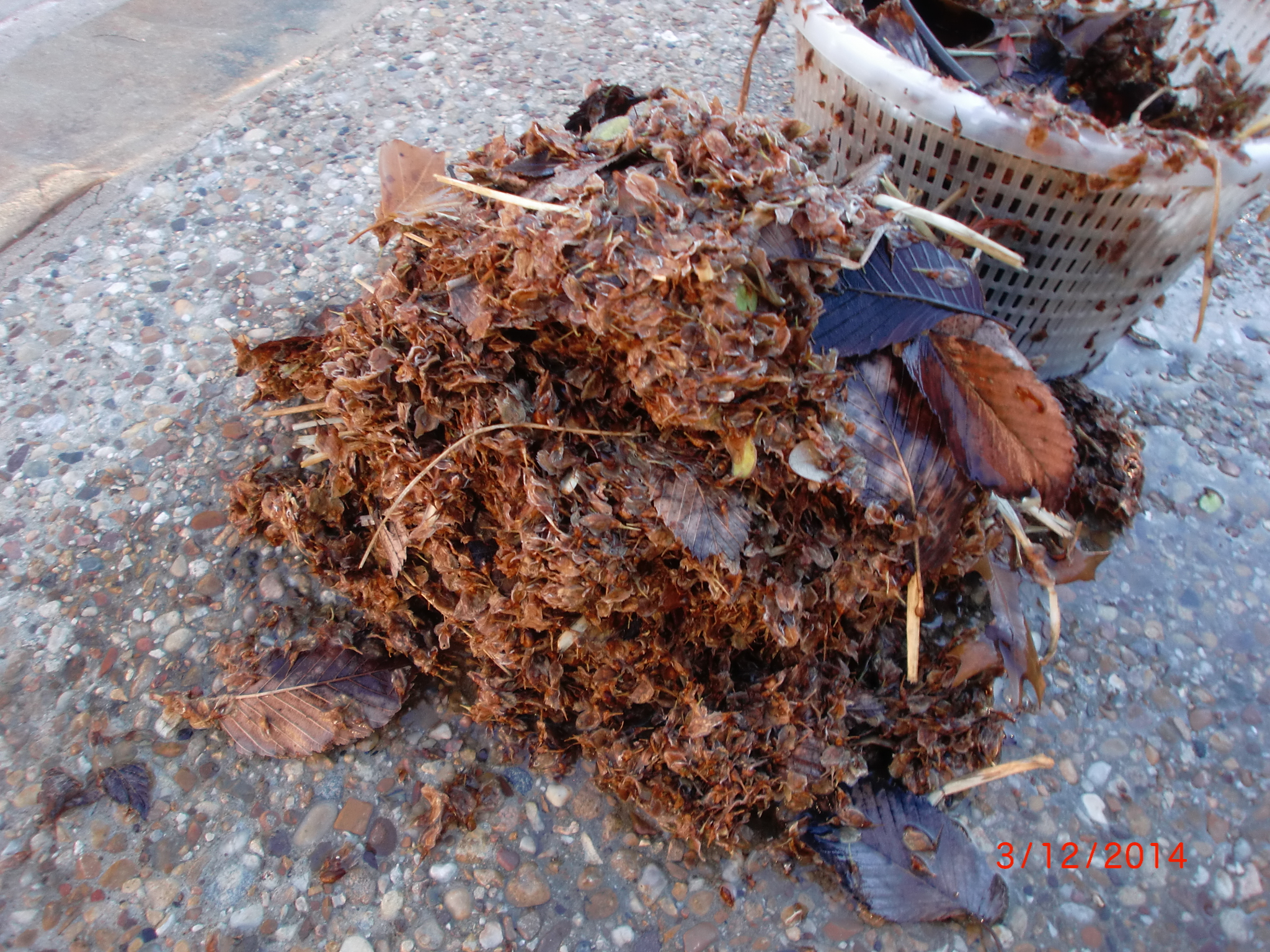 Those that find the pool as a landing place, may float for awhile before being caught in the skimmer. Or, if they are floating-adverse, they will hopefully find a resting place on the pool floor where the “auto-vac” can easily suck them up. The second picture is the fruit of the skimmers efforts after a windy night. Once the skimmer gets to full, the pump may shut down because no water is able to penetrate the thick mass of tree “wannabees”.